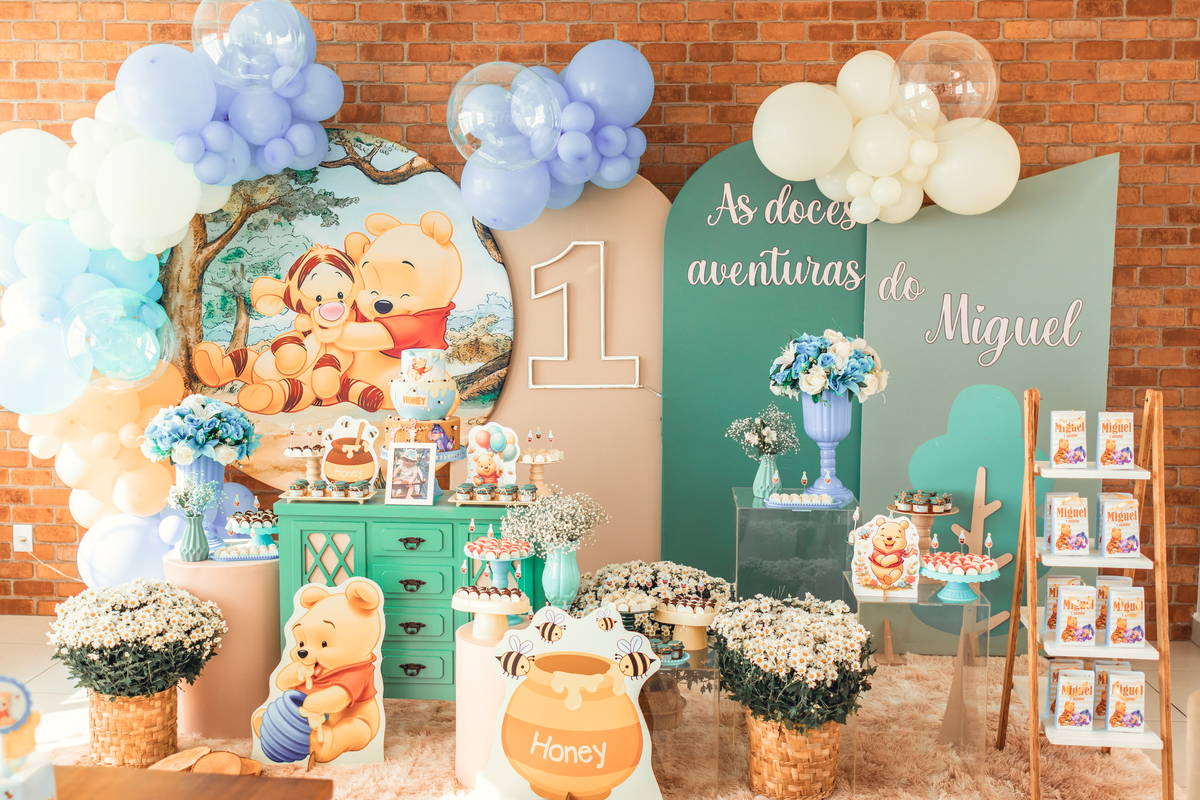 O primeiro aninho do Miguel foi celebrado com muita doçura, carinho e sorrisos que aquecem o coração! A decoração encantadora inspirada no universo do Ursinho Pooh trouxe um clima lúdico e aconchegante, perfeito para eternizar esse momento tão especial.